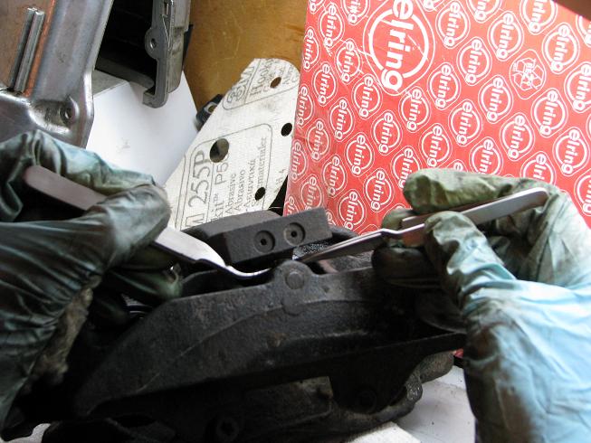 По колодкам: я настаивал на оригинале, но его надо было ждать, поэтому из лучшего взяли Textar... очень специфический запах наполнителя (типа тухлые яйца) точь в точь как у оригинала.... в толще включения то ли алюминия то ли меди....