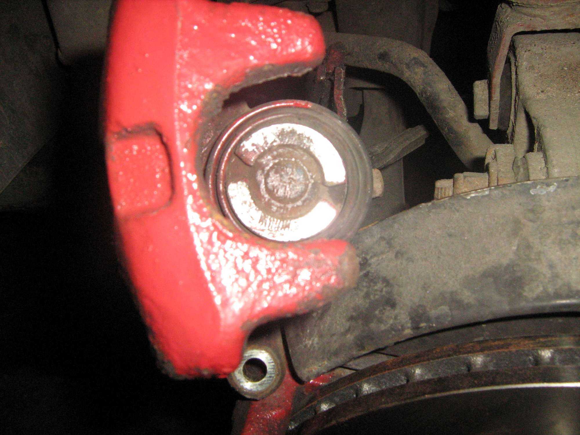 две выемки на самом поршне сделаны для нее.можно в гаражных условиях это выполнить.откручиваем штуцер прокачки и по часовой давим и вкручивает одновременно.