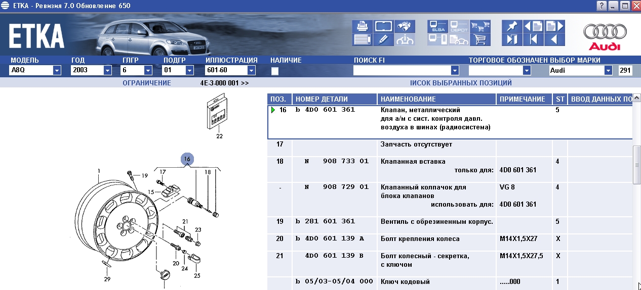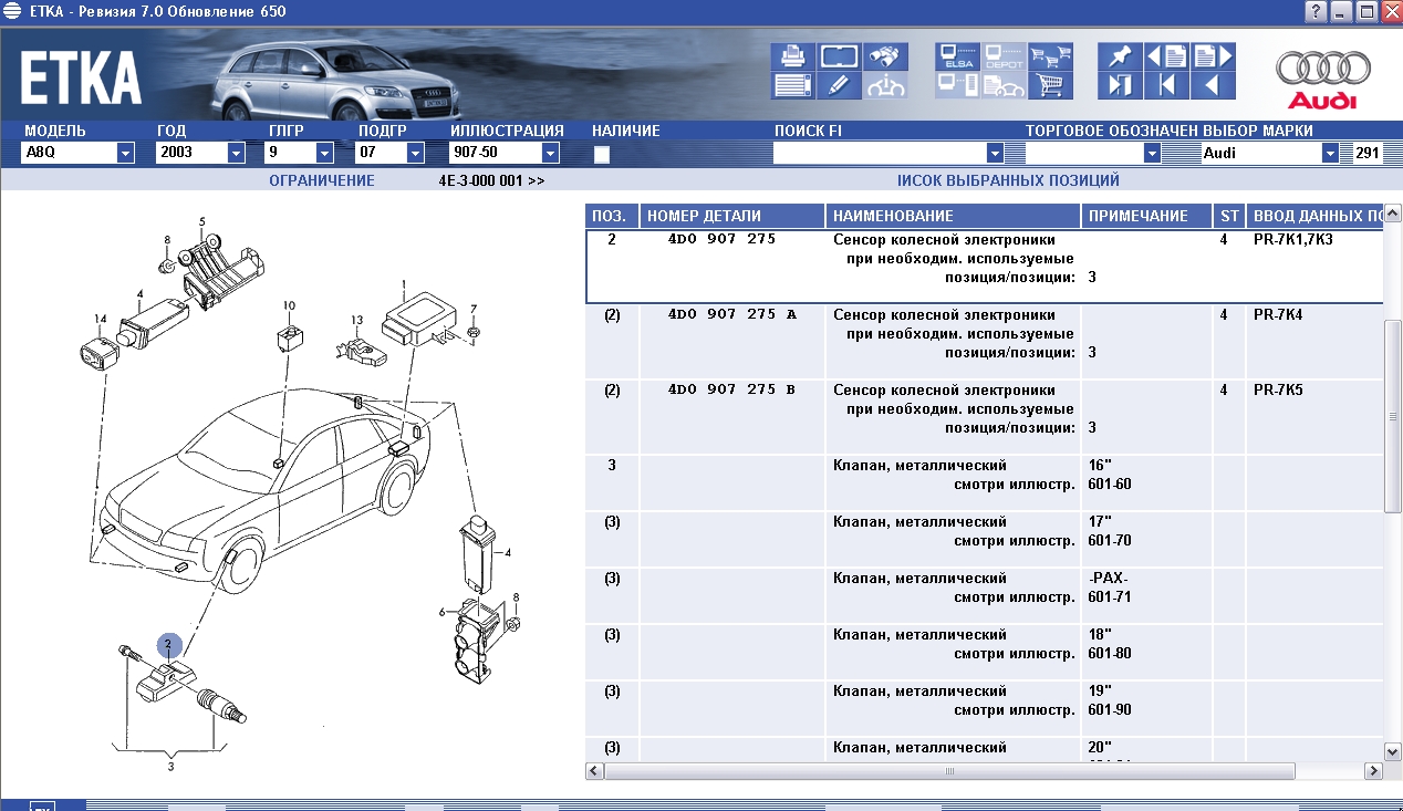 Ага, теперь понял. Датчик в колесе состоит из двух частей - 4D0907275C - электронная часть, 4D0601361 - сам сосок датчика. Оба номера есть в ЕТКА.dasus писал(а):to Akin