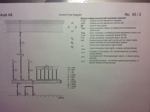 что не понятного то,,, 30 клемма постоянный плюс питающий блок люка,, от (бело/жёлтого провода на схеме V94 - Центральный замок, двигатель с блоком управления задержки выключения -),, блок просыпается. Что не понятного то,, кстати этим же проводом запитаны все устройства которые работают с задержкой или до открытия дверей