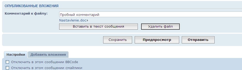 «Предпросмотр» позволяет увидеть сообщение в конечном виде до опубликования, ниже можно внести коррективы в текст и вложения, потом либо опубликовать, нажав «отправить», либо «сохранить» сообщение в черновиках.