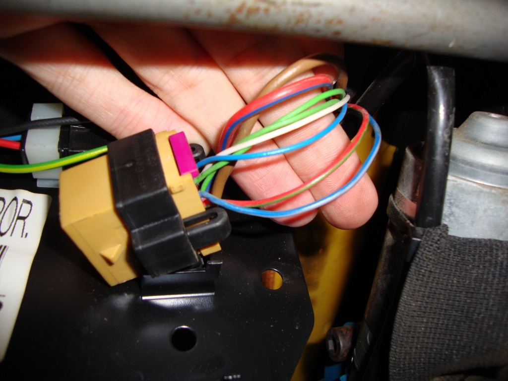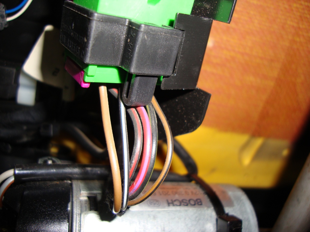 Вот эти провода на фото - к коричн.фишке приходят