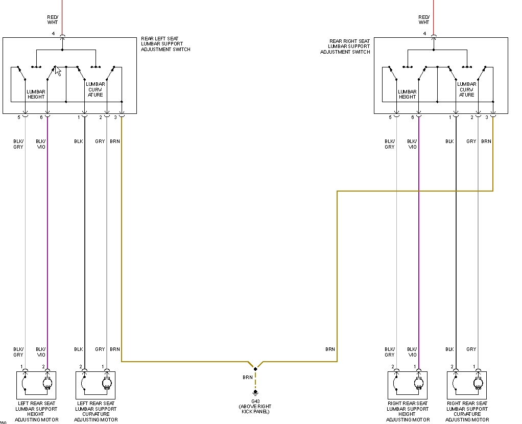 Схема проводки регулировок заднего сиденья.