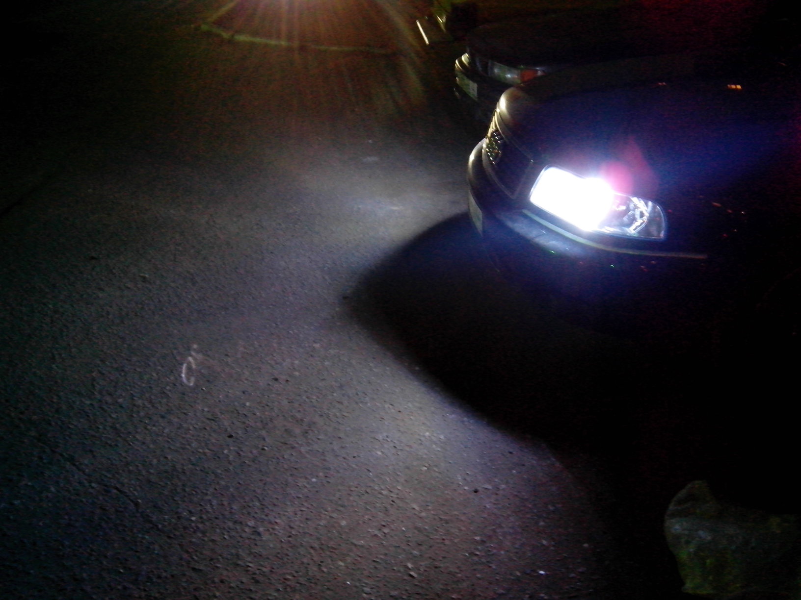 Целый час мучался пытаясь сфоткать на "мыльницу" и телефон как светят фары в темноте...