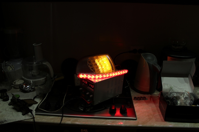 Вот, думаю, может и их на половинной яркости подключить к габаритам, а на полной и стоп и противотуманка через диоды работать будут независимо...