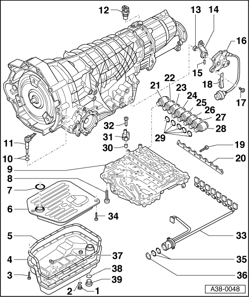 39 - Резьбовая пробка отверстия для контроля уровня и заправки ATF