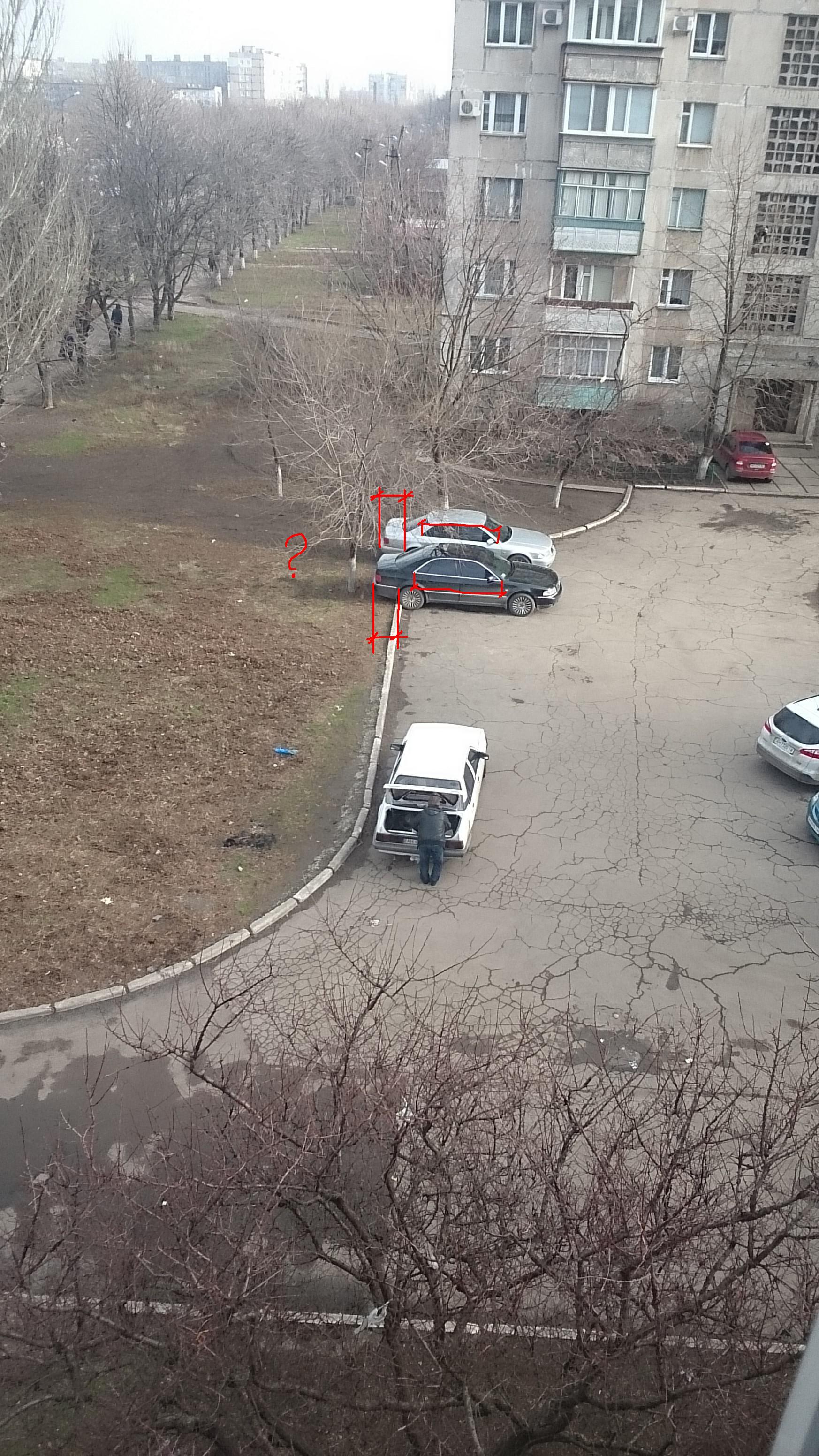 Померяйте от нижнего угла передней двери и до конца треугольника сзади.