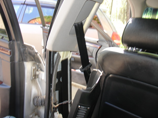 При обратной сборке ,когда будете ставить на место внутреннюю обивку центр.стойки ,обратите внимание на то,чтобы эта панель стала на свое место по направляющей(находится сразу под креплением ремня) для корректной работы ременного механизма и механизма подъема ремня