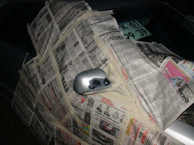 Вобщем красил я себе зеркала "хромом" из балончика :D Сначала зашкурил