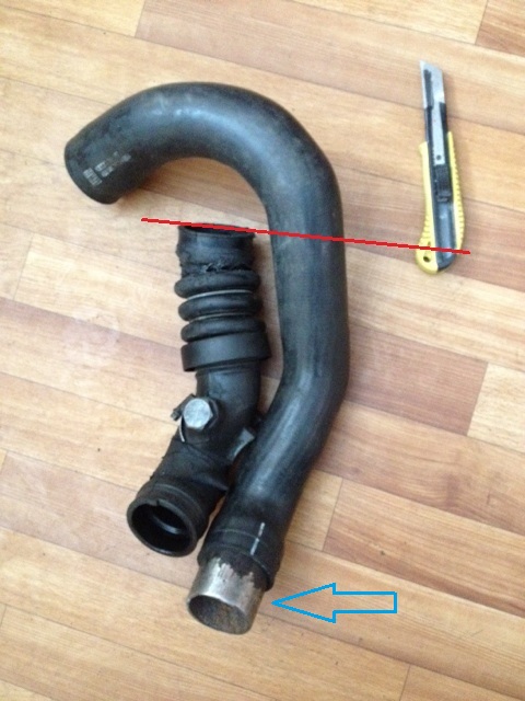 Да со стороны интеркулера отрезал родной патрубок но он там в притык и почти не ходит так что тоже надежно.