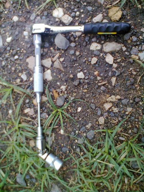 Установленный инструмент. Ещё раз обращаю внимание, что именно жёсткость такой конструкции позволяет открутить этот злополучный болт при очень малом ходе воротка
