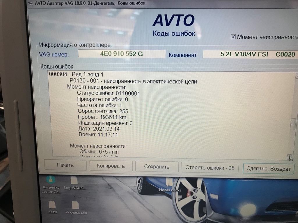 Слав, получается по первому блоку ошибка 06435 (не помню о чем гласит), якобы ругается на 2-ой блок, а во втором блоке - 12823 обрыв цепи, нет связи, непостоянно. Ряд 3, Зонд 2 (как то так, но дословно завтра скажу). Стер ошибку во втором блоке по лямбде и ушла ошибка в первом блоке! Завтра катнусь и снова прочту!