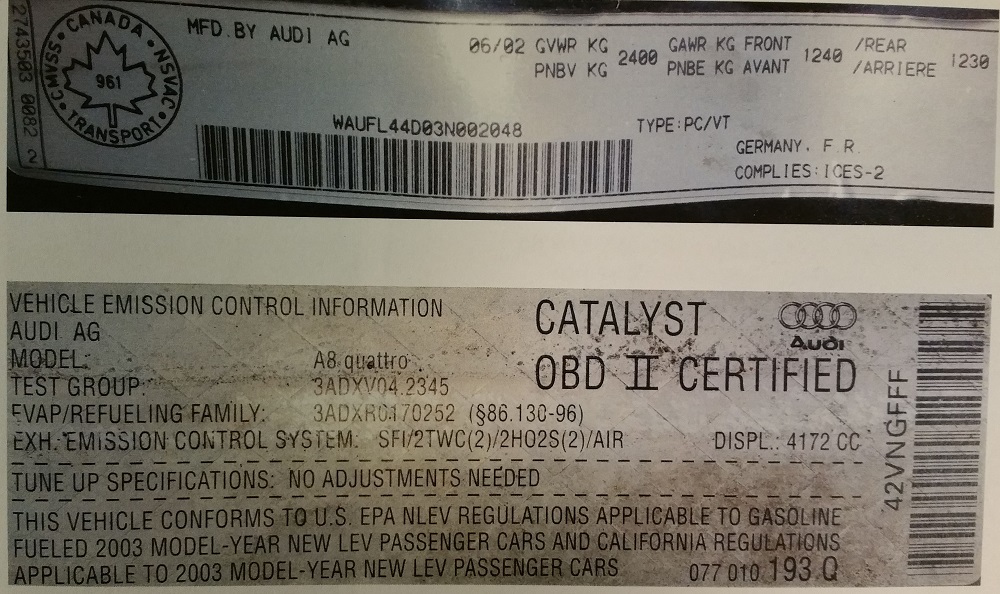 Нашел Ауди А8 квадро 2003 года на шроте (разборке) за приличную цену.