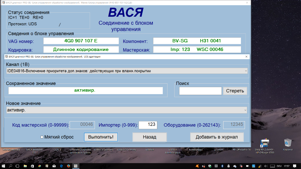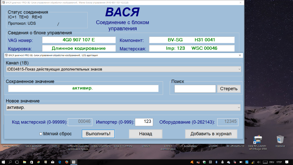 3: Далее берем VCP, пункт залить параметрию, далее загружаем ZDC файл a6_c7_imageProcessor_Camera_4g0907107e, у меня блок изображения 4g0907107e, поэтому я и взял файл a6_c7_imageProcessor_Camera_4g0907107e, ВЫ загружаете ZDC под свой блок!. После загрузки файла выбираем блок 8E, ставим галочку на RestOfWorld_TrafficRecognition_HeadingControl, ставим галочку напротив EraseFulMemory и заливаем, процедура длится несколько секунд. 4: После всего этого у кого все получилось, берем ВАСЮ итп, заходим в блок изображения 8E, заходим в закрытую область и в водим логин S12345, далее в каналы адаптации и проверяем канал IDE04733-Распознание дорожных знаков, чтоб было в режими Fusion, если нет то выбираем режим Fusion, это нужно для того чтобы система работала вместе с навигацией 5: проверяем канал IDE04734-Постоянный показ максимальной скорости, чтобы было всегда. 6: канал IDE04736-Показ знаков окончания зоны действия огр. максимальной скорости, значение 1. 7: канал IDE04737-Показ знаков зоны запрещения обгона, активируем. У меня знаки обгон запрещён так и не хочет отображать, но читал, что у кого то показывает, зависит от приборки и блока изображения. 8: канал IDE04815-Показ действующих дополнительных знаков, активируем. 9: канал IDE04816-Включение приоритета доп.знаков:действующих при влажн. покрытие, активируем. После всех перечисленных действий должно все работать. Если все таки не работает то в зеленом меню проверяем строчку car/carbusassignment/Traffic sign recognition(VZE) чтоб значение было как на фото ниже, но по умолчанию должно стоять правильное значение. Но и фотки, что система работает