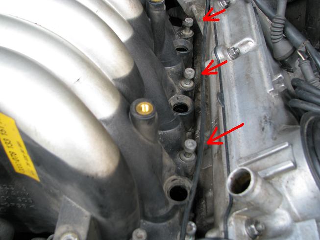 -Отсоединяем топливную рампу с инжекторами, она крепится на 4 болта. Отводим ее в сторону не трогая трубки. -По периметру впускного коллектора откручиваем болты -Снимаем все видимые тонкие воздушные трубки и разъемы в задней части двигателя.