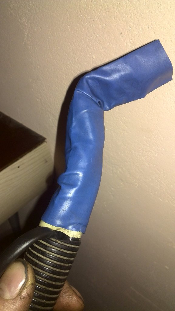 Далее получившийся разъем окунаем в моторное масло( или химию, ну кому как нравится) и одеваем термоусадку. после этого надеваем гофру и ее усаживаем также на термоусадку. Результат на фото