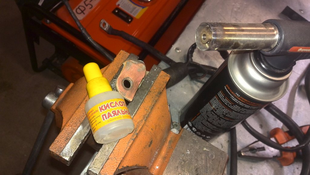 отмеряем, отрезаем, в клемму наливаем немного паяльной кислоты, вставляем кг в клемму и разогревая газовой горелкой добавляем туда припой пока он через край не закапает. Потом когда немножко остыл - приплющиваем молотком.