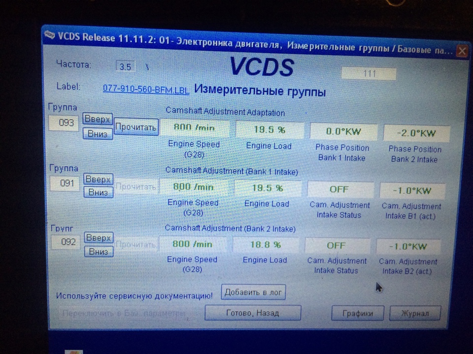 Первоначальная проблема была шум (скрежет) фазика в левой голове при заводке 1 сек после 20-30 минут простоя. после были поменяны: башмачки, цепи, редукционные клапаны, датчики детонации, датчик коленвала , грм клапан ВКГ свечи, промыты форсунки. теперь детонация на холостых появляется не сразу после спада оборотов сек через 5-7 и шум типа гидрик чокает по левой башке не постоянный переменный. иной раз вообще без чоканья и скрежета только легкая детонация, на оборотах все ок тяга норм. метки грм выставлял спец инвентарем, по фазикам левая 15 роликов правая 16. помогите понять показания по каналам.