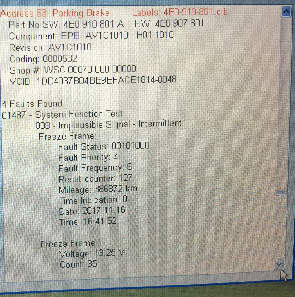 Скан показывает ошибки по 282 и 283. По факту ручник работает.