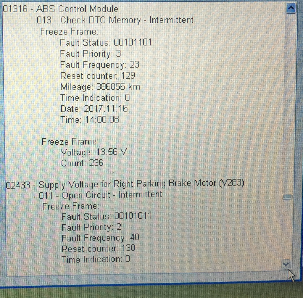 Скан показывает ошибки по 282 и 283. По факту ручник работает.
