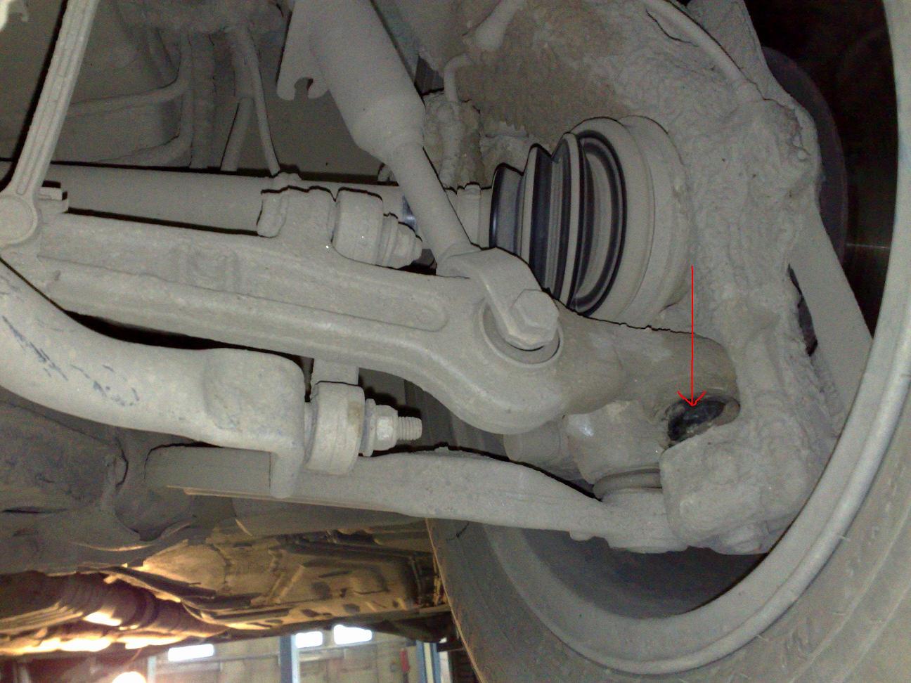 Порвался пыльник (см. фото, вид снизу спереди на левое колесо)