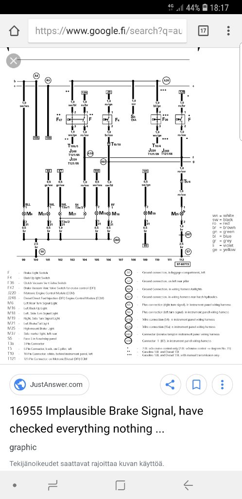 Откопал схему в нете, цвета проводов не подходят, но удалось подключить так, что теперь ошибка не в достоверном сигнале, а теперь ругается на датчик давления 1 тормозной системы.