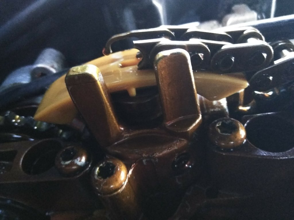 Позвонил клиент-стала машина. Ожидал насос или датчик колена.провенил-все нгрмальго. Умудрился запустить-еле-ел и грохот... сразу заглушил. Годтназад перебирал ему натяжители и менял прокладки. Поставил колено в вмт-правая сторона по метке - левая - шайба показывает недоворот градусов 15. Снял крышку и мрачно офигел