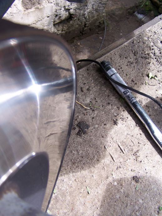 • затем болгаркой снимал буртики. На внутренней стороне диска снимал так же буртики как и на внешней, но для удобства перевернул диск на ступице в другую сторону и, чтоб он ровно прилегал к ступице, то между диском и ступицей подложил одинаковой толщины три шайбы под тремя болтами.