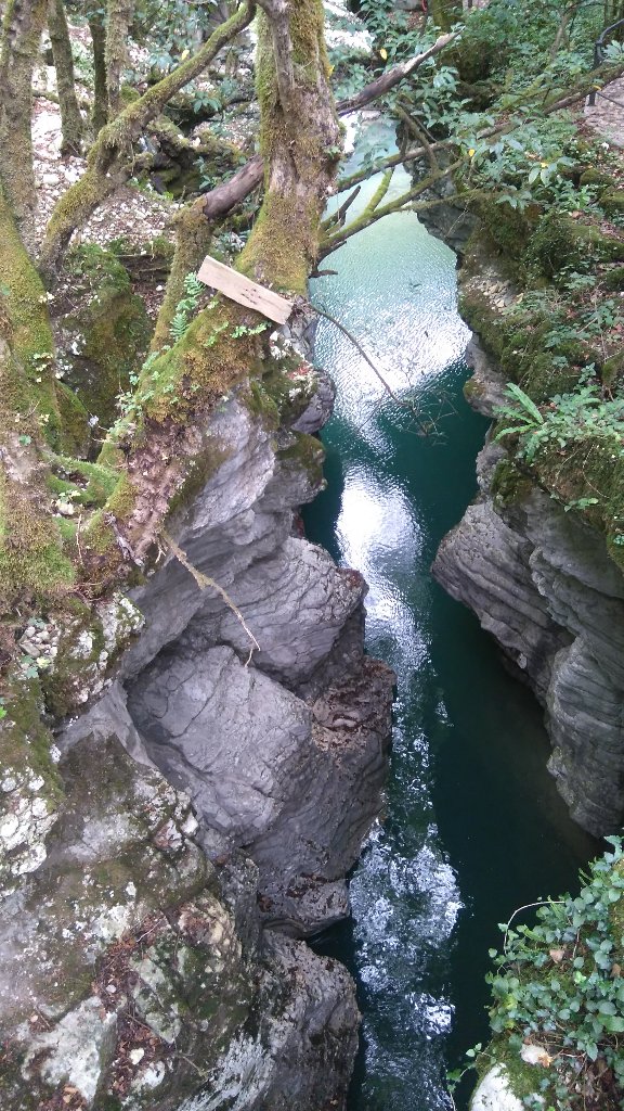 Каньон промыт в горах промыт одноименной рекой. Что бы до него добраться надо остановиться на стоянке у туристического центра. А затем два варианта : или пешком или на внедорожнике с местными жителями. Но мне нравится сочетанный вариант. Туда прогуляться пешком , около 2,5 км лесопарком созданным князьями Дадиани, у которых тут была одна из многочисленных резиденций, а обратно подняться на внедорожнике, что само тоже захватывающее действо.