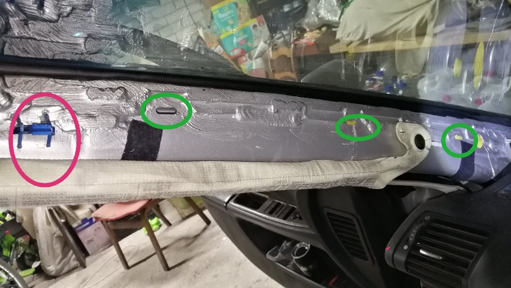 Откручиваем и снимаем все ручки,крючки,козырьки,выковыриваем плафоны(откручиваем скрытые болты под ними).Под задним плафоном крыша крепится на двух мет.зажимах!!!отковыриваем их отвёрткой.И погнали