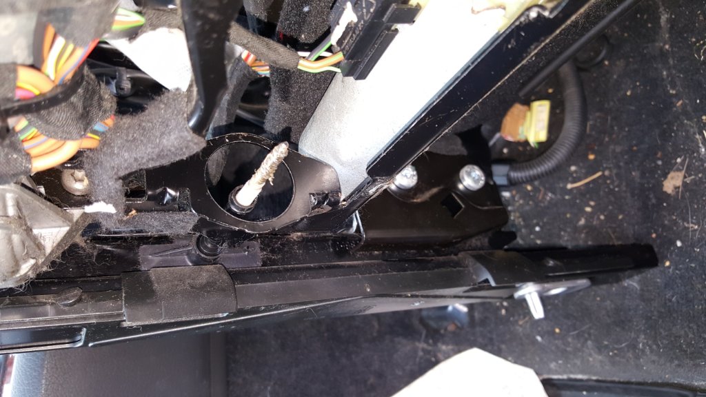 Надо засовывать руку, пытатся вставить тросик в мотор и почуть-чуть двигать сиденье с каждой стороны.