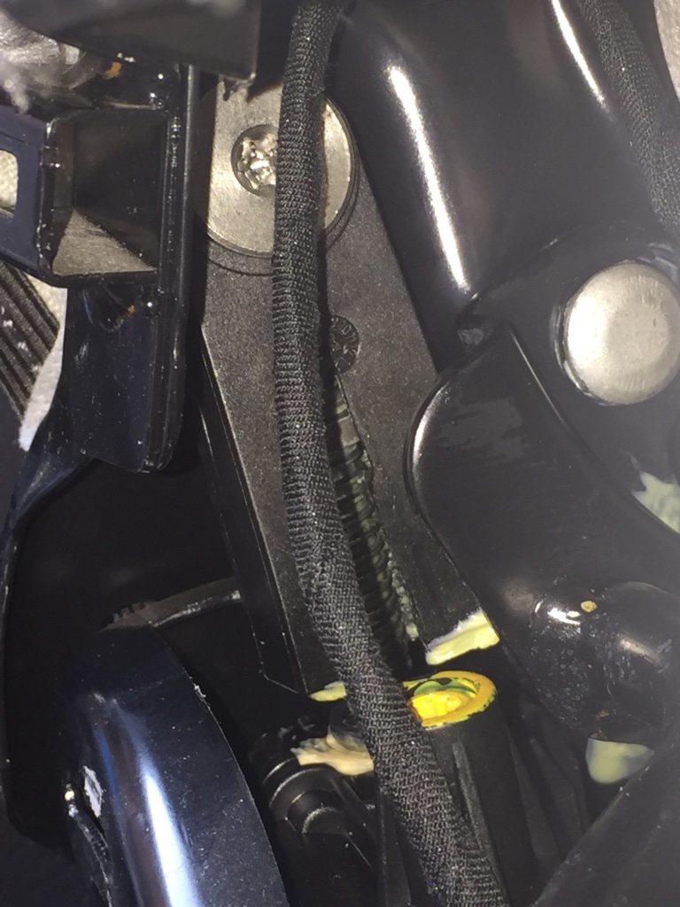 Для снятия левого механизма подъема опускания спинки - откручиваем сам мотор от привода. 2 болта! Отсоединяем мотор и получаем доступ к стопорному кольцу, его легко сдернуть. После чего откручиваем фиксатор, залитый желтой краской, который фиксирует штифтовую передачу на правую сторону к подобному механизму. Снимаем левую часть. Пол беды..