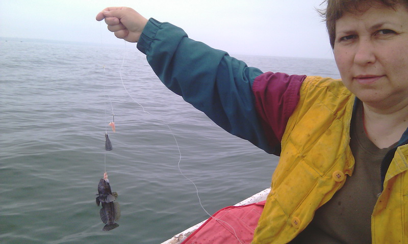 На фото один бычок, а вообще, когда опускаешь закидушку, сколько крючков - столько рыбы.