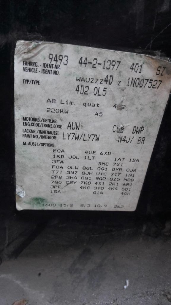 Пробивка комплектации Audi A8 по VIN