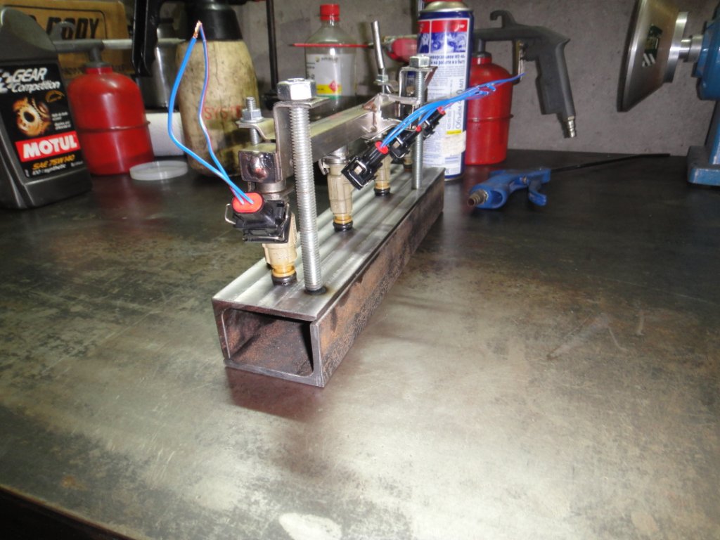 После покупки контрактного мотора у меня образовалась испорченная топливная рейка от AQH Отпилил поврежденную половину рейки и заварил выход второй трубки, нарезал пару уголков Поскольку прокатный уголок даже на глаз весь горбатый, его одну плоскость пришлось немного фрезернуть на станке Замерил и просверлил ответные отверстия для форсунок, как на рейке Так выглядит не законченный вариант (продолжение следует). Фишки купил жигулёвские, шпильки зафиксированы сваркой. На фото, уголок подложен для того, чтобы конструкция не падала, в финальной версии выглядеть будет по другому