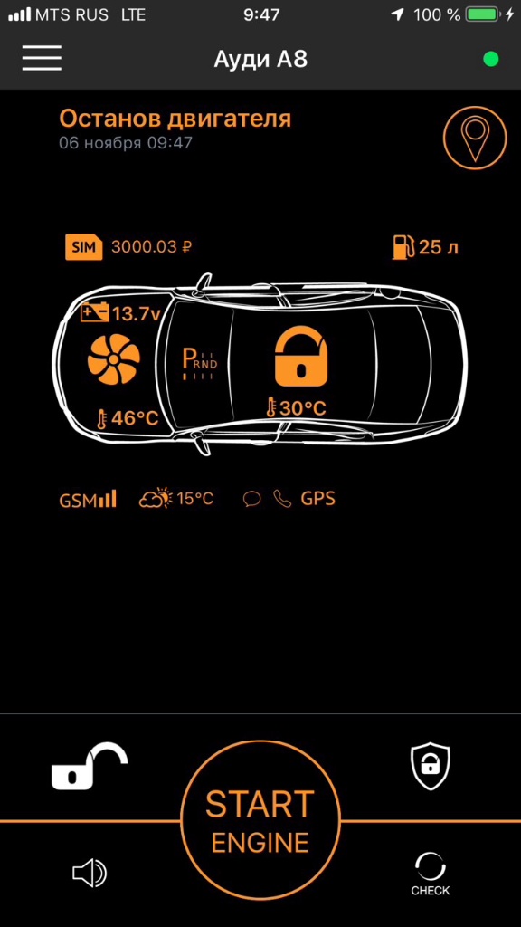 Вчера машину на стоянку поставил с такой телеметрией