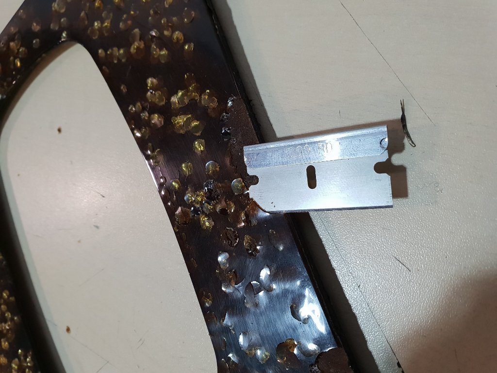 - потом как все отколупали все равно остануться мелкие коцки и остатки лака, чтоб это убрать я очень аккуратно и осторожно зашкурил мелкой наждачной бумагой градаций Р400 и дальше Р600, самое главное много не перетереть.