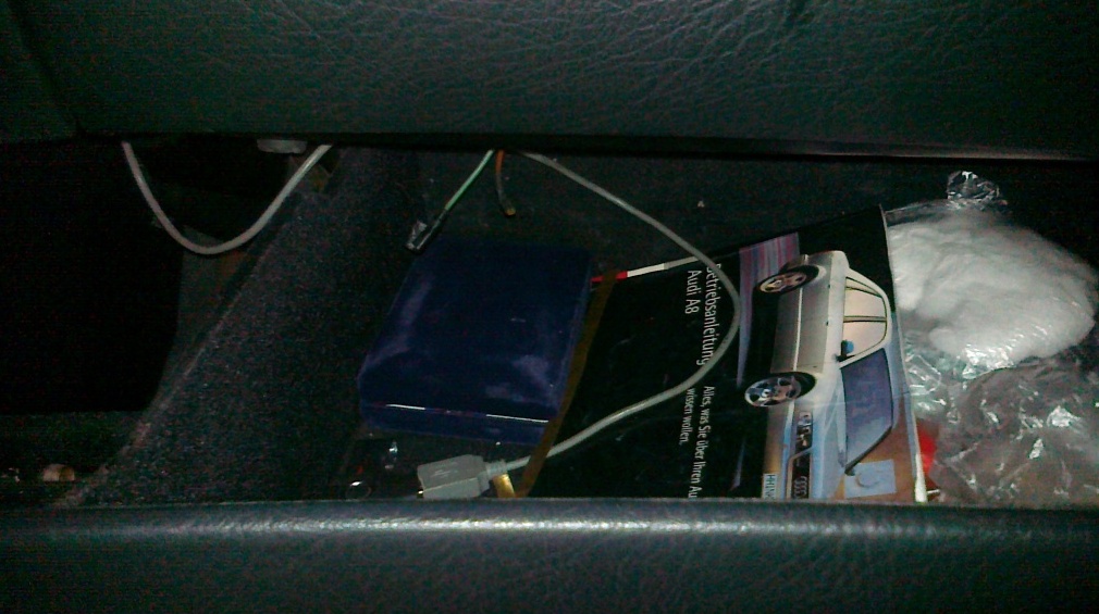 Концевик в замке бардачка стоит,не сняв бардачок до него не доберёшься,при включенных габаритах и открывании бардачка микрушка замыкается и на клеммы плафона подаётся напруга. 4D0 947 311 если что номер оригинальный этого плафона.