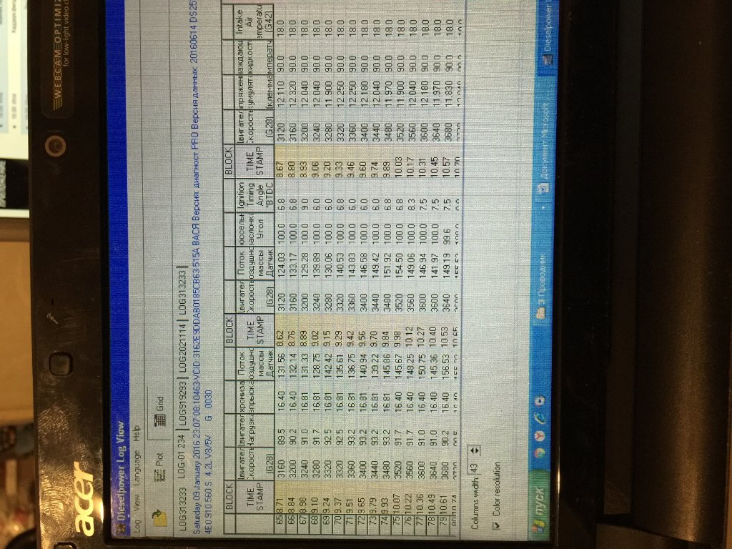 ГРМ посмотрел вроде вё по меткам.Компрессию мерил 1 год назад,но не все цилиндры,тогда она также в хоатично пропускала зажигание поэтому мерил и не все,было хорошо.Пока она стояла я помыл форсы с заменой колечек,поменял прокладки клап.,крышок и ещё по мелочи когда завел была такая проблема её колбасило и на холостом пропуски и тд.,мерил давление в рампе,по лямбдам по подогреву показывала обрыв потом понял,что я не правильно одел фишки на лямбды переставил и вроде всё нормально,но сейчас на холостом без пропусков,а перегазовка от 1000 об/м до 2000 с пропусками и не важно резко или плавно или если держать до 2000 об/м то вибрация чувстуется,наверное детонация,пропуски зажигания есть и выше просто на 2000 об.,чувстуется,как двс работает не ровно.Скажите какие показания должны быть у ДМРВ на оборотах или,как его проверить.На холостых укладывается в допуск,без климата 4,5-4,9 с климотом примерно 5 с мелочью, на 2500 об.,12-17,но это грубо.Сразу скажу это не день,как происходит поэтому я форум уже плотно читаю,но пока не могу найти причину,по сему прош!у у кого есть знания и время помочь.На данный момент думаю сделать так,ошибки скинул покатаюсь км.,150-300 и все нужные каналы выложу сюдя причём покажу и на газу и на бензе.Где то было,что дмрв от 2000 должен показать 20,30,40.Если кто подскажет,как ДМРВ проверить очень буду благодарен.Спасибо