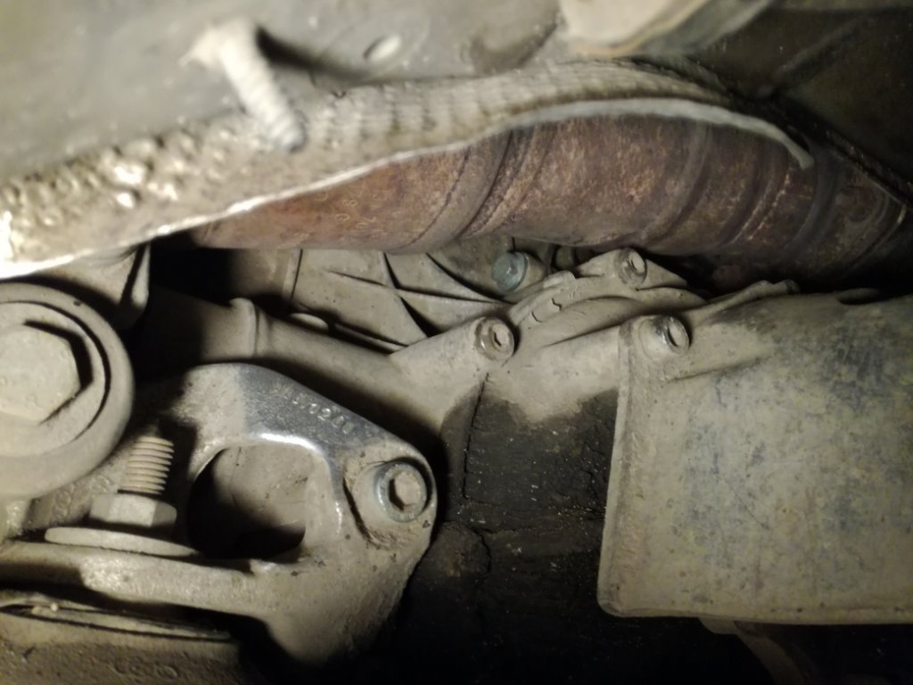 Откручиваем подушку с кронштейном,что под стартером там три болта под шестигранник на 8,откручиваем крепления трубы глушителя от коробки и от трубы, дюраливую защиту внутреннего пыльника шрусса откручивать совсем не нужно как описано в эльзе, Зато надо снять правую подушку коробки дабы так удобно,откручиваем нижний болт стартера со стороны бампера(все просто)А вот этот болт на фото(его отручивать нужно с карданчиком маленькой трещеткой с удлиннителем он закручен 65 ньютонов)и если очень напрегстись