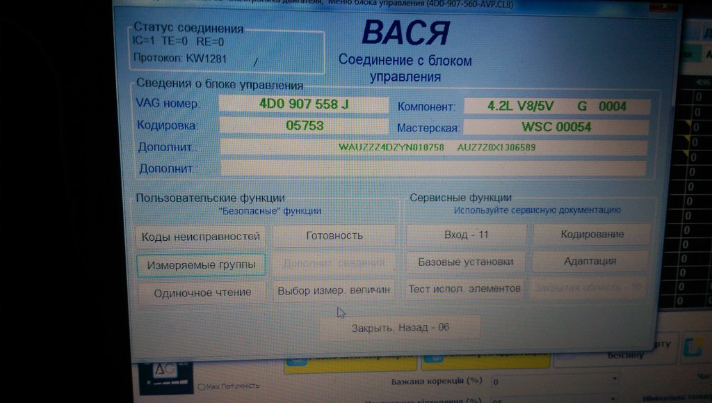 доброго времени суток всем.у миниа такая проблема ужасно троит двигатель..AQH audi s8 2000 года 4,2..раксодомер новый .но от ваза. бош.читал тему на форуме и сибе купил.стало чуть лутше. обратно новое.. Делать незнаю.вот фото измеряемый груп двигатиля.