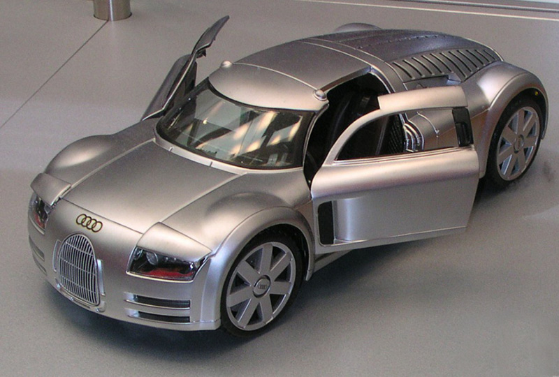 Конечно, есть в этой машине и авангардные решения. Например, расположенные на крыше видеокамеры заднего обзора (наружных зеркал нет), полноприводная трансмиссия (редкость на суперавтомобилях класса GT). И — алюминиевый кузов! Его блеск в тусклых софитах выставочного комплекса Autostadt напоминает о концептуальных алюминиевых автомобилях Audi Quattro Spyder, Audi Avus, Audi ASF и о былых победах немецких гонщиков.