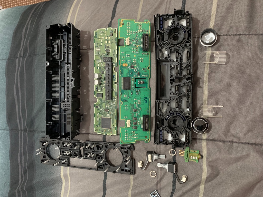 Климат снимается проще. Нужно снять пластиковую накладку с отсека мми (где карточки памяти), чтобы не мешала, затем поддеть блок климата и вытащить.