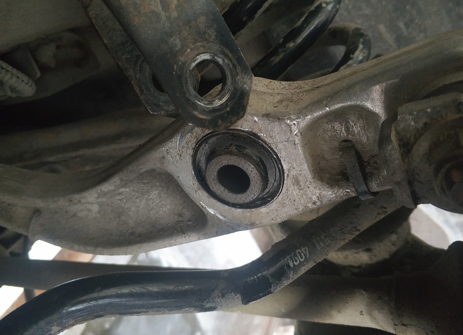 Втулку изготовил из металлической трубки от старой детской коляски, наружный диаметр 14 мм, внутренний 12мм, длинна по размеру сайлентблока, делал все из подручных средств, менял на месте не снимая рычага.