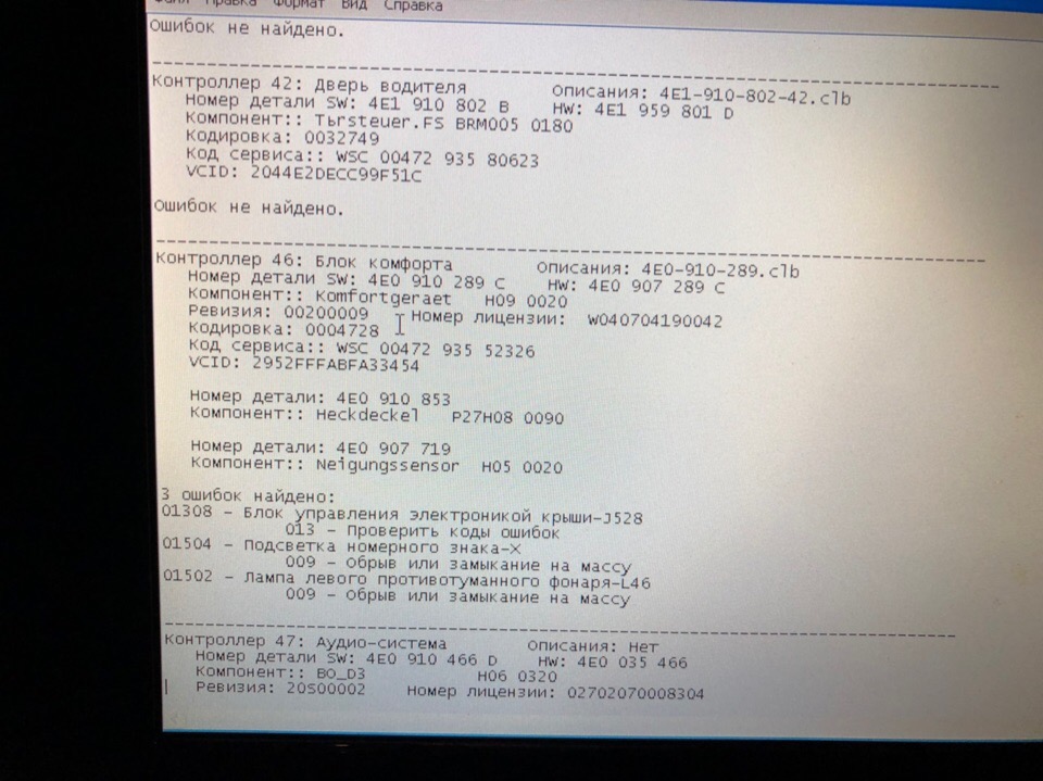 Висит ошибка по подсветке 01504 009 обрыв или замыкание на массу