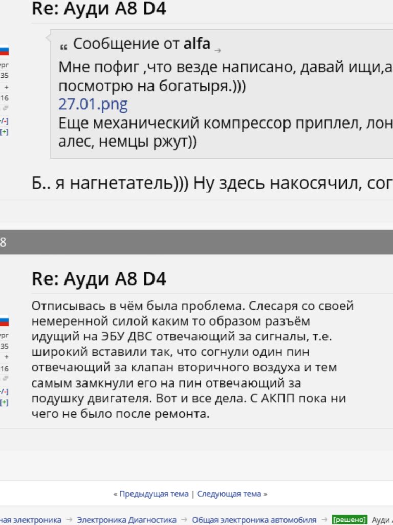 Спасибо Саид! Сопротивление катушки исполнительного механизма новой опоры 4,5 Ом (нормально); разъемы снимал, визуально ничего криминального не видно, опоры коробки мне визуально не понравились (хотя ошибки по ним не было) - заменил обе. Подскажи пожалуйста, что за клапан вторичного воздуха?