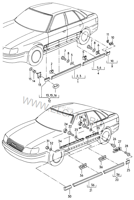 Надо выкрутить шуруп (поз 22) и потянуть молдинг вдоль кузова по направлению к багажнику до упора (примерно 2 см), затем на себя (перпендикулярно двери).