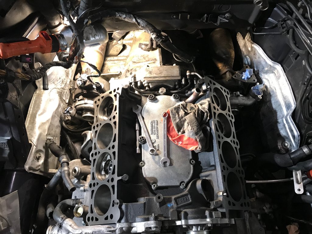 Пока собирал мотор между делом поставил алюминиевые зеркала от S8 и салон Recaro Sport вместо матрасов и диски R20. Фото будут после устранения течей!