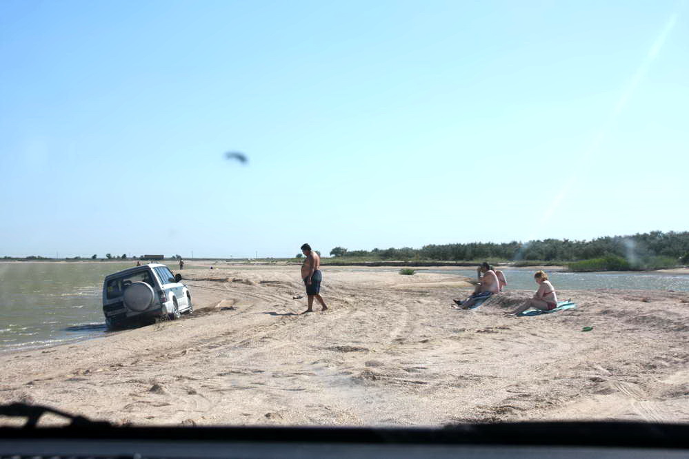 ну вот мы и приблизились , наконец к узкому полоске, разделяющему бейсугский лиман и ханское оз.(сол.)