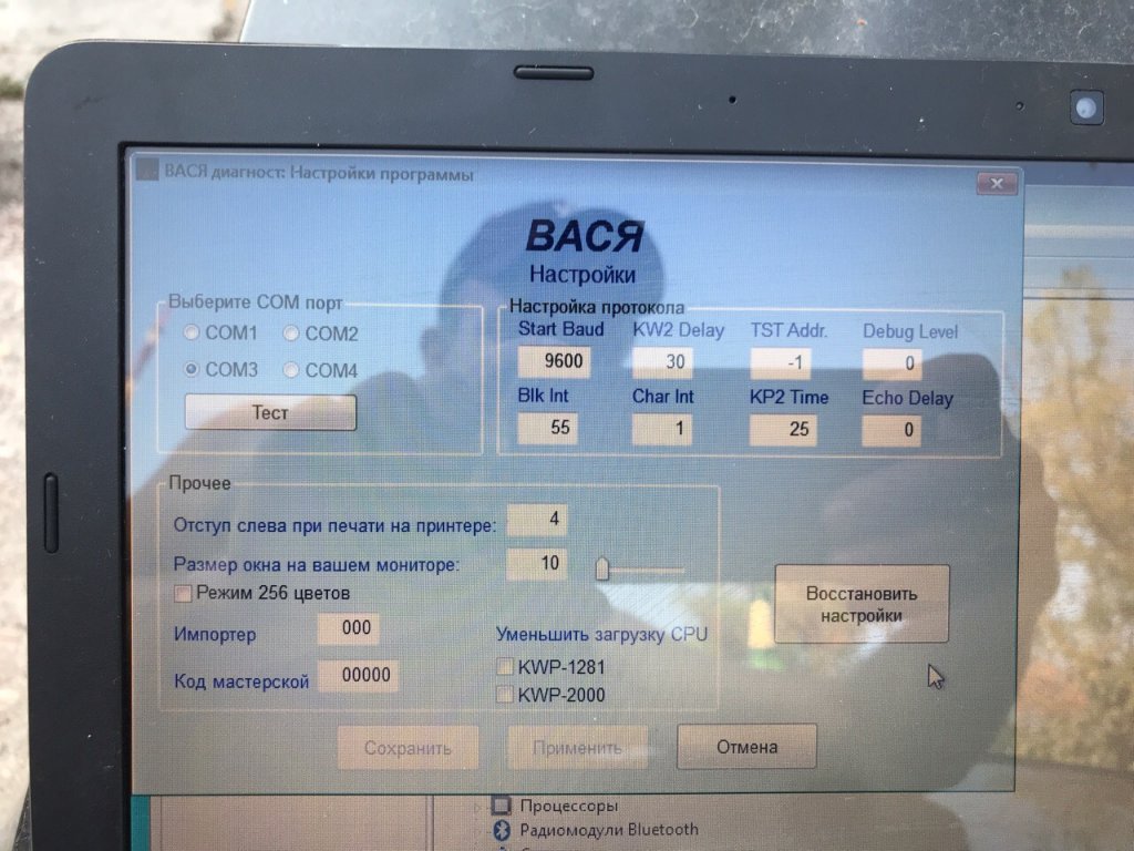 Еще при ее владении покупал шнурок, к нему шел ВАСЯ на диске и всё прекрасно работало. Сейчас же снова попробовал почитать, тот же провод, та же программа, а блок двигателя, акпп, абс не видит, смог прочитать только приборку и климат. Предики проверил все в салоне, в багажнике и тд. Подключился лаунчем х431 старым, двигатель увидел (значит проблема именно в ВАСЕ), но коробку и абс нет. Прикладываю фото настроек васи, может там надо что изменить. Буду признателен за все идеи